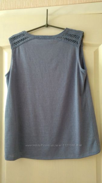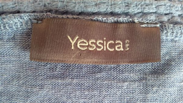 Легкий джемпер на теплый сезон бренда Yessica. Указан размер М, реально на L. Цвет темно-голубой, ближе к "джинсовому". Вверху украшен мережкой. Сзади джемпер немного удлинен. Длина по спинке 67 см., по переду 63 см. ПОГ 52, ПОТ 55.