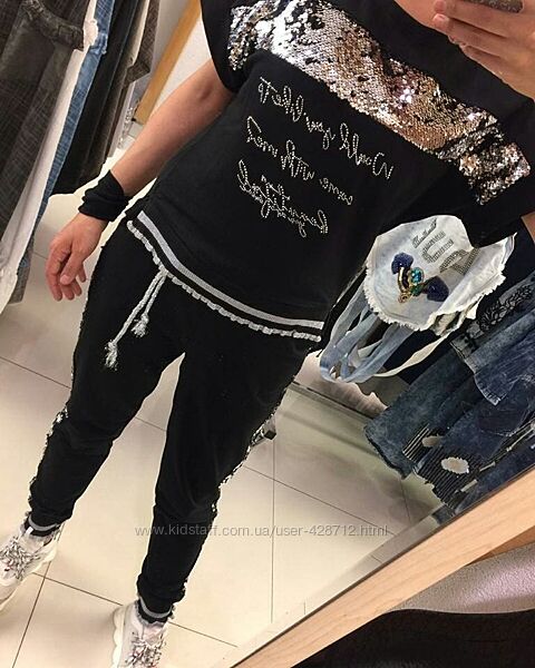 Замеры М футболка ширина под руками 50 см длина спереди 55 см длина сзади 66 см штаны ширина в бедрах 52 см длина 97 см шаг 70 см