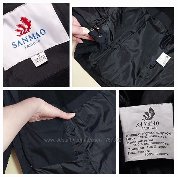 Все густо наповнене холофайбером (при пранні не збивається). Підкладка жилеткою та комір - фліс, рукави та капюшон - поліестер.