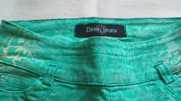 Красивые лёгкие джинсы-джеггинсы турецкого производства фирмы Diren Jeans Kids на худенькую девочку ростом около 152см. На бирке указан рост 164см и возраст 13-14 лет, но реально маломерят.Цвет бирюзовый с бархатистым узором, отлично тянутся, в талии без застежки. К нему есть такой же жакет (см. в моих обїявлениях).