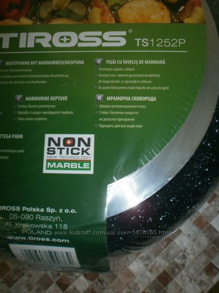 Привезенная из Европы сковорода Tiross TS1252P. Диаметр сковороды - 28 см, мраморное антипригарное покрытие, обеспечивающее качественное приготовление любой пищи без пригорания, толстое многослойное дно, аккумулирующее тепло и сохраняющее энергию, подходит для использования на газовых, электрических, индукционных, стеклокерамических кухонных плитах и поверхностях, в комплекте поставляется стеклянная крышка с ненагревающейся ручкой и отверстием для выпуска пара, ненагревающаяся ручка сковороды, страна производства - Польша, хорошее европейское качество.Оплата - наложенный платеж либо предоплата на карту. Способы доставки: самовывоз, Новая Почта, Укрпочта, Деливери, Justin (отправка 2 раза в неделю). Возврат товара – в течении 14 дней при сохранении упаковки и отсутствии следов его использования.