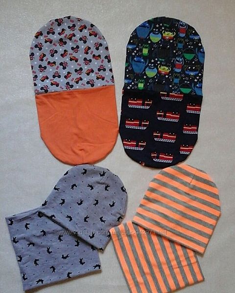 Подробное описание: шапочки и наборы с динозаврами и животными, двухсторонние, лето и деми