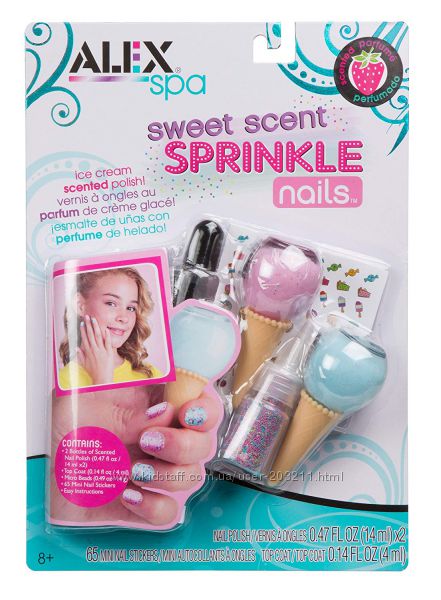 Только оригинальный товар!Набор лаков с ароматом ванили и клубники и наклеек для ногтей ALEX Toys Spa Sweet Scent Sprinkle Nail Stickers.