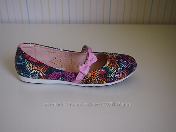 Туфельки від українського виробника Palaris.Повністю шкіряні. Жорсткий задник, ортопедична подушечка на устілці. Гнучка підошва з ТЕП (Туреччина).