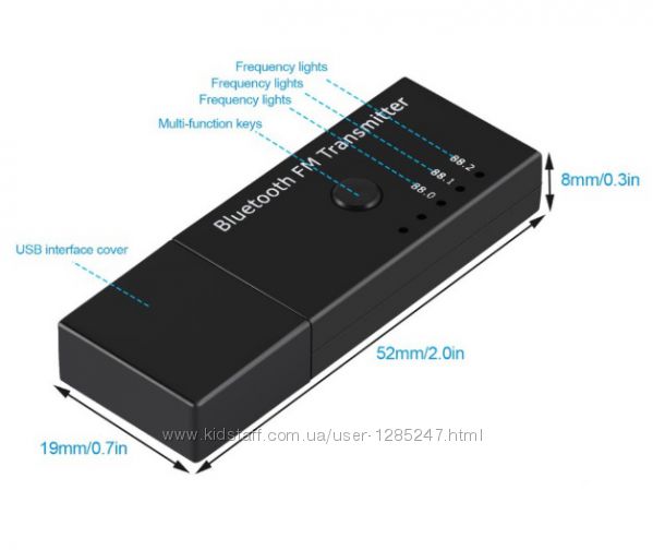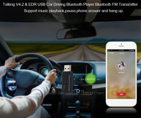 Устройство передает музыку с телефона или планшета, при помощи bluetooth, на автомагнитолу, муз. центр и другие устройства, имеющие FM диапазон.