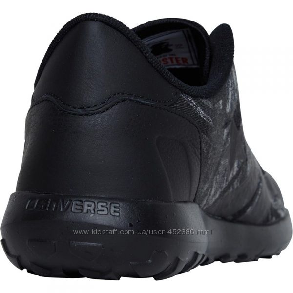 Converse THUNDERBOLT ULTRA OX BLACK/BLACK/WHITE - оновлена версія класичного old school силуету THUNDERBOLT. Верх моделі виконаний з повітропроникного текстильного матеріалу, зміцненого безшовним методом термофіксації поліуретановими зональними накладками. П´яткова область зміцнена зональною накладкою зі шкіри, яка, крім декоративної, несе ще й зміцнювальну функцію, відповідаючи за підтримку та надійну фіксацію п´яти. Проміжна підошва, виконана з піноматеріалу Nike Lunarlon, гарантує відмінний амортизаційний ефект, що знижує навантаження на суглоби, а формована устілка створює додаткову пружну амортизацію. Брендінг ретро-зірка та логотип chevron Thunderbolt.