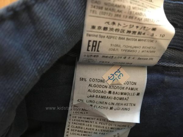 Подробное описание: Джинсы Benetton. лен, коттон.