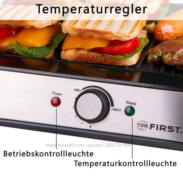 2 рифленые платформы с антипригарным покрытием, обеспечивающих равномерный нагрев и поджаривание с обеих сторон