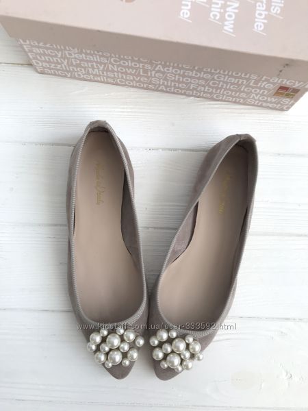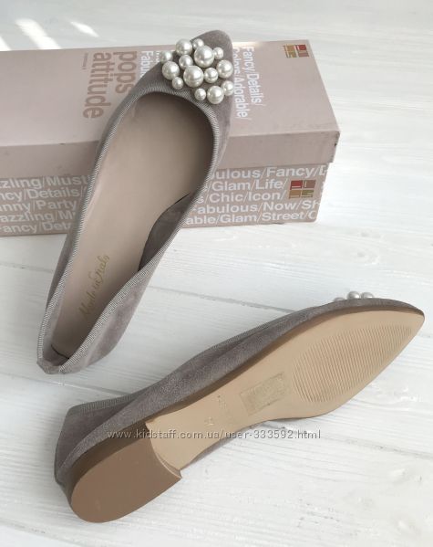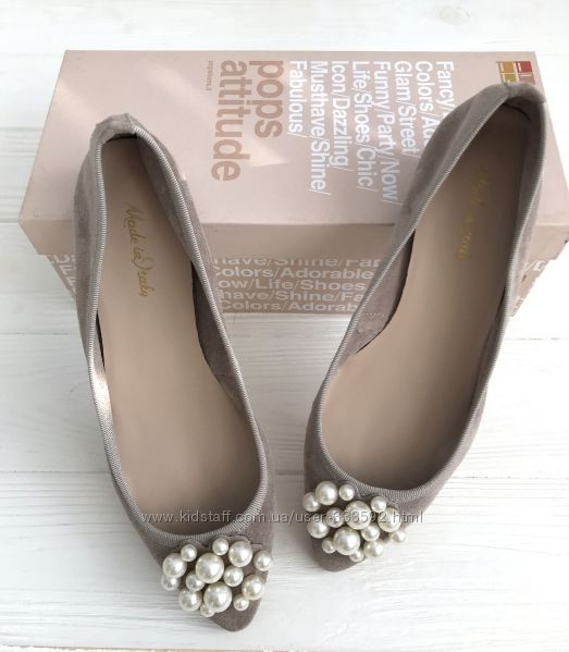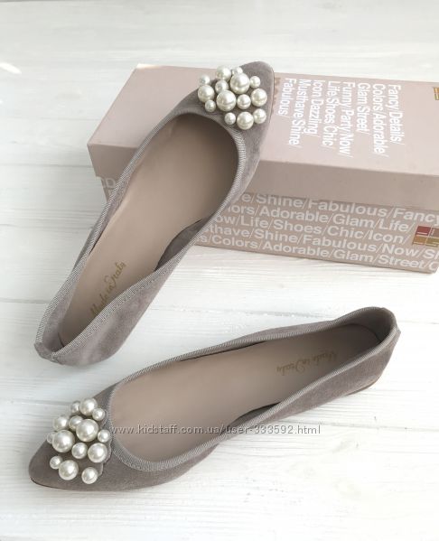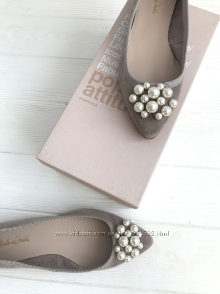 Подробное описание: Мягкие остроносые замшевые балетки декорированные бусинами , Италия