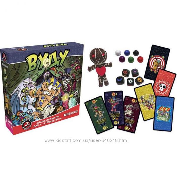 Предупреждение: вы можете умереть от смеха. Наколдуйте для ваших противников смешные проклятия! «Вуду» это настольная карточная итальянского издательства «Red Glove». Бестселлер 2015 года. В 2016-м году продажи превысили 700 000 копий.