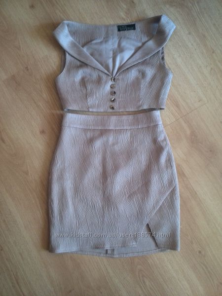 Очень красивый костюм, ткань тянется, корой подчёркивает достоинства фигуры Топ: длина по шву на спине 30см, пог 41см. Юбка: длина 47см, пот 34,5см, поб 46см.Другие объявления продавца