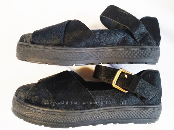 Туфли F-Troupe (Размер 37)На высокой подошве. Туфли на танкетке, застежка на ремешке. Изготовлены из натуральной кожи, сверху кожа с гладеньким ворсом. Стелька мягкая, комфортная.