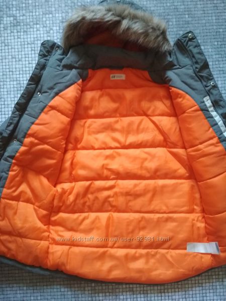 Стильная курточка H&M Подойдёт на наши зимы - лёгкая, тёплая, после стирки сохнет быстро.Предусмотрены светоотражающие детали. Капюшон на кнопках.
