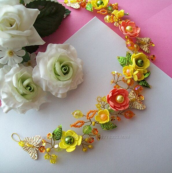 Нет в наличии, под заказ, изготовление 2-3 дня.Гибкий обруч-полуободок-заколка-венок-веточка-украшение в волосы-колье для девочек на выпускной в детсад, выпускной начальной школы, утренники, праздники и т.п.