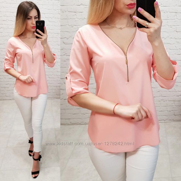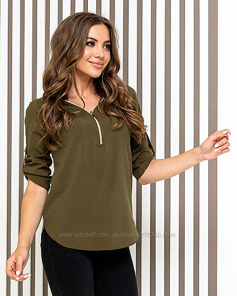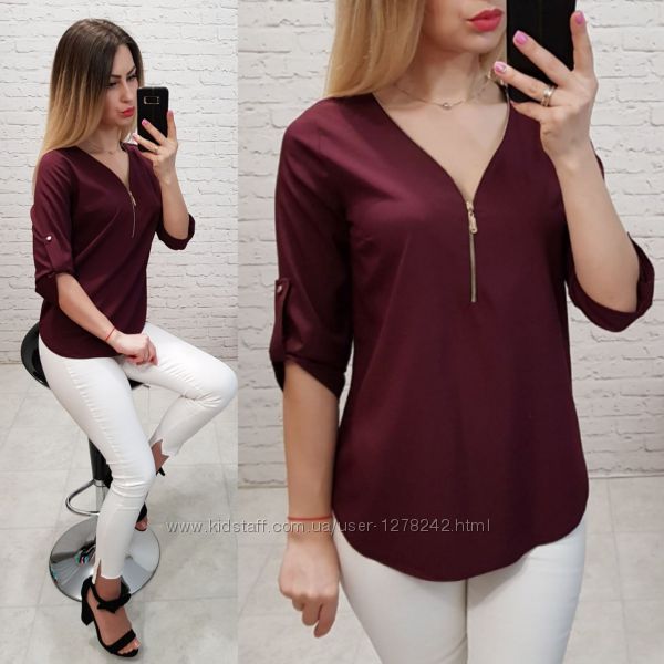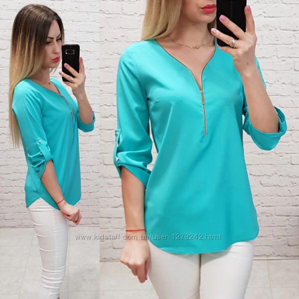 Новинка 2019! Красивая блузка в ярких расцветках, с рукавом 3/4, длину которого можно регулировать с помощью застежки на пуговице. Блуза с молнией на груди и с овальной ассиметрией внизу.Ткань: софт.Размер: 42, 44, 46, 48Цвет: бирюзовый, белый, голубой, розовый, красный, электрик (ярко синий), марсала (бордовый), черный.Длина блузки 63 смЗамеры изделия в разложенном видеРазмер 42 44 46 48