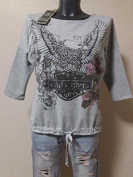 Яркий эффектный,молодежный, брендовый свитшот-оверсайз Metrofive,с рукавом 3/4Актуальная,практичная,комфортная базовая модель-оверсайз,с заниженной линией плеча и рукавом три четверти.Универсальная вещь для повседневных,городских,прогулочных и спортивных будней.Свитшот хорошо миксуется с шортами,джинсами,спортивными штанами,лосинами и джеггинсами.Модель представлена в эффектных ярких цветах.