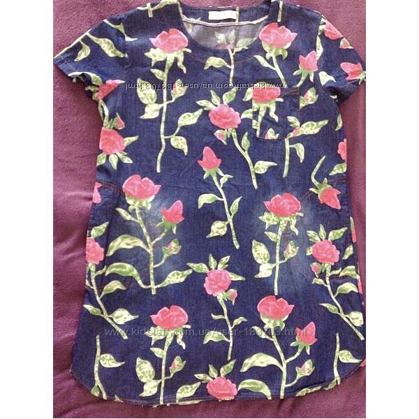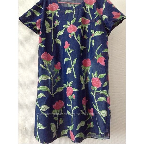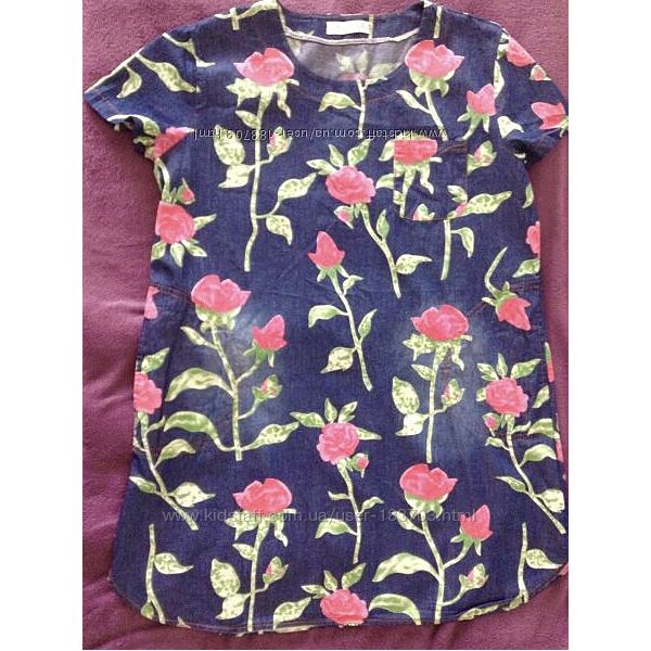 или подойдёт и на высокую, если носите короткое. Ткань тоненький джинс , по бокам карманы.