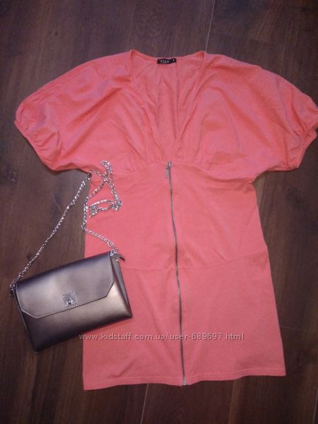Изумительное трикотажное платье шведского бренда VILA в трендовом цвете сезона-живой коралл. Талия завышенная, спереди декор -молния отлично стройнит фигуру, трикотаж комфортный к телу.Размер на бирке L