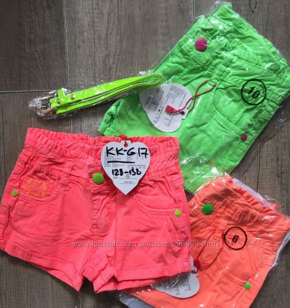 Шорты коттоновые для девочек от фирмы S&D. Модель практичная, хорошего качества. Верх на пуговице и молнии. В комплекте с ремешком.Состав: cotton 93%, lycra 7%.Размерный ряд: 4-124 длина 20 пот 24 салат продан
