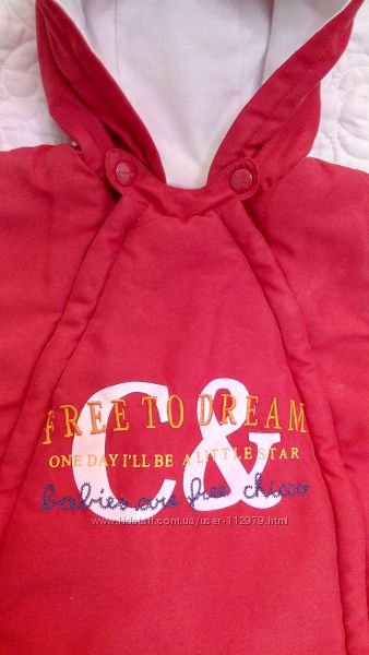 Комбинезон демисезонный Chicco на рост 74. Утеплитель - полиэстер (на ощупь синтепон), флисовая подкладка.Капюшон несъемный.