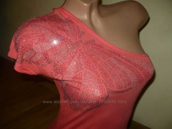 Футболка Туника кораловая с оголенным плечом S Вискоза