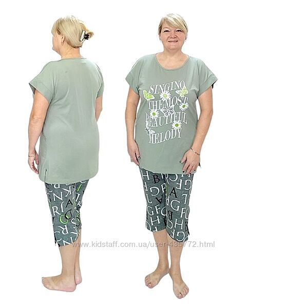 фото 7,8,9,10 жіночий костюм, літній комплект футболка та бриджі. Футболка прикрашена прінтом - якісний шовкотрафаретний друк. Модель виконана з натуральної тканини - матеріал бридж реактив, блуза стрейч кілір піньє. Бриджі з двома не великими боковими розрізами, блуза з внутрішніми кишенями.
