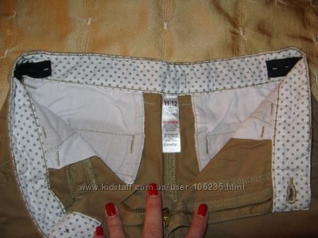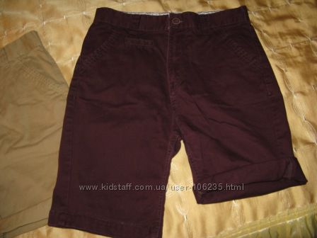 Горчичные и бордовые коттоновые шорты фирмы Georgeна 11-12 лет в идеальном состоянии, постираны один раз, коричневые не одевались, бордовые одеты один раз к огромному сожалению не угадала с размером.Замеры: длина общая без подворота - 47 см, полуобъём в поясе максимум - 37 см (есть утяжка), ширина в бедрах полуобъём по низу ширинки - 46 см ширина штанины по низу полуобъём - 22 см.