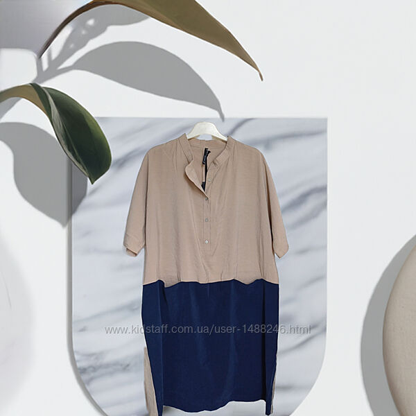 Платье бежевое с синей вставкой DA.CO, ИталияТкань как мокрый шелк