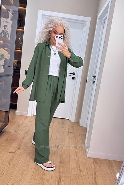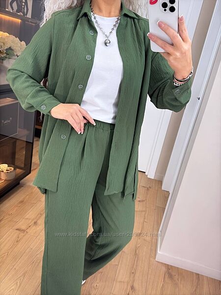 Подробное описание: Костюм літній з жатки сорочка з брюками, 573