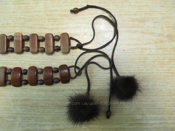 Женский пояс с деревянными вставками и меховыми кисточками. МАТЕРИАЛ:натуральное дерево,мех. ДЛИНА : 80 см ШИРИНА : 3 см ТОЛЩИНА :0,9 см ЦВЕТ : коричневый Обмен,возврат:не предусмотрен! Смотрите все мои объявления! Доставка:Новой почтой,Укрпочтой за счет покупателя Оплата: 100% на карт-счет Приват