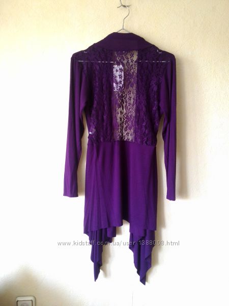 Новый стречевый трикотажный кардиган с кружевной спинкой оттенка марсал 18