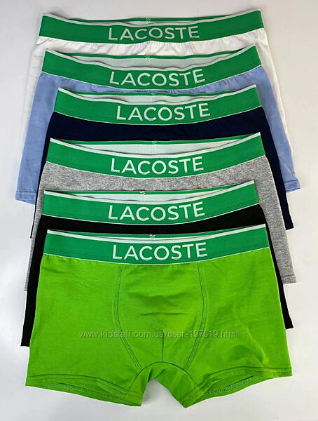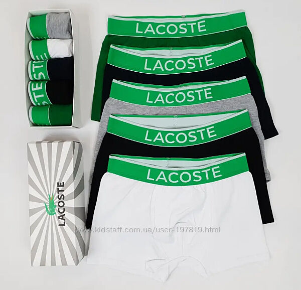 Подробное описание: Набор 5 шт. Мужские трусы боксеры Lacoste в коробке. Мужское нижнее белье.