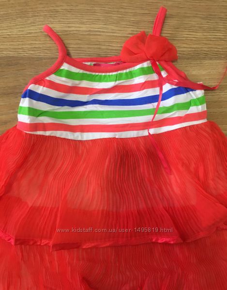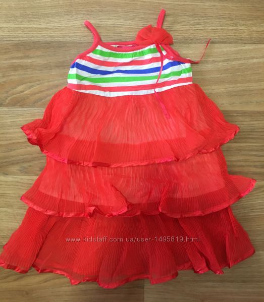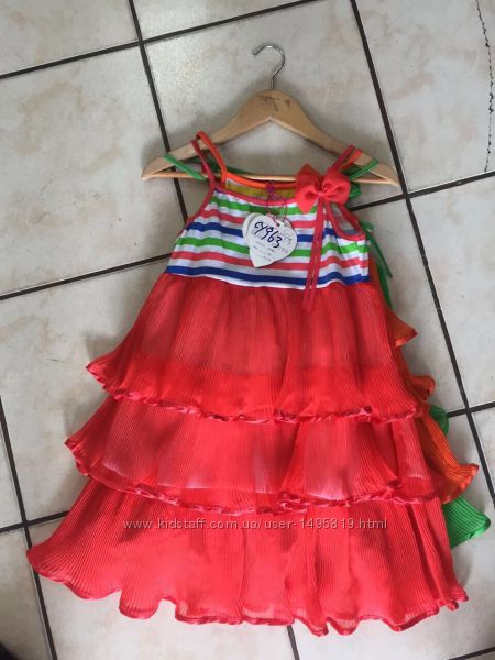 Летний сарафан для девочек от венгерской фирмы S&D. Модель - на бретелях, низ - шифоновая юбка из мелкоплиссерованных воланов. Очень классные!!!Состав: cotton 85%, elastan 5%, poliester 10%.