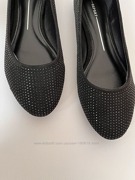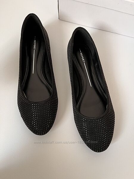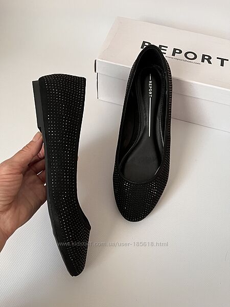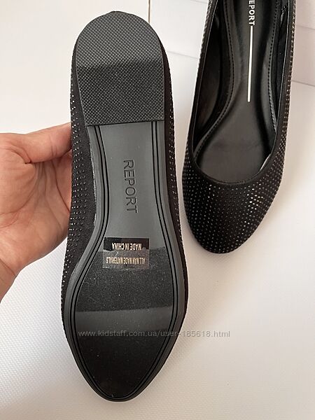 Легкі балетки Report зроблять щодень казково легким. Вони якісно виготовлені з синтетичного матеріалу з оздобленням мерехтливими камінчиками. Зручна м´яка устілка для комфортного носіння. Легко взуваються, міцно тримаються на ніжці.Розмір американський 9 (євро 39) - по устілці 26 см.