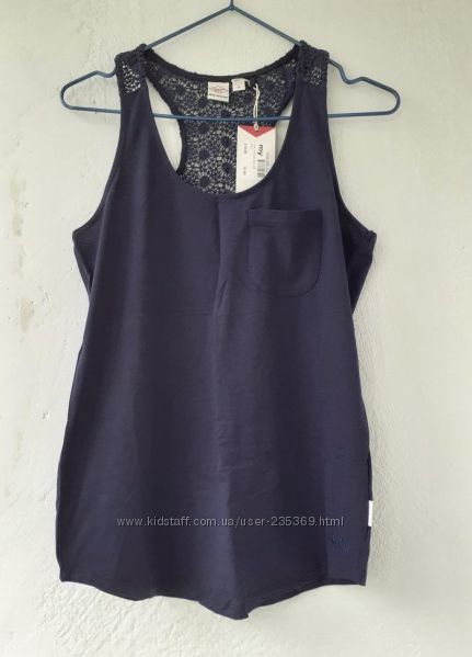 майка с кружевной вставкой Lee Cooper (Англия), приталенный силуэт, круглый вырез, карман на груди. Цвет темно синий (как на фото 1). 53% вискоза, 47% хлопок