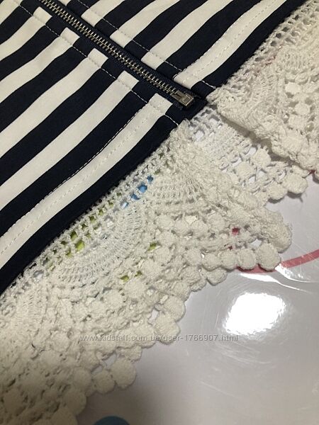 Полосатый летний пиджачок на девочку. Застегивается на молнию, внизу кружева. Отлично подойдёт сверху на платьице или сарафан, под юбку или джинсы. Замеры по запросу, иногда большемерятДругие объявления продавца