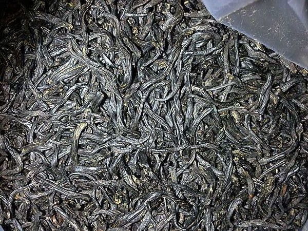 Сухие чайные листья имеют глянцевую поверхность, ярко - черного цвета.