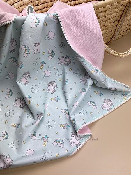 Ідеальний весняно-літній пледик! Дуже м´який та ніжний, він стане незамінним для прохолодних літніх вечорів, виписки з пологового будинку або як легка ковдра для ліжечка та коляски. Розмір пледика: 80x100 см Подушка: 30x40 см (подушка зі змінною наволочкою) Купуйте комплект або окремо - вибір за вами! 💳 Оплата: безпечна/ на картку / накладеним платежем (завдаток 100 грн.). 🚚 Доставка через Укрпошту, Нову пошту або Meest.