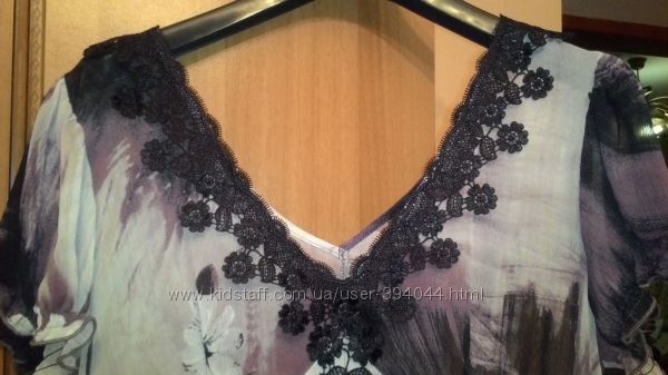 Плаття, розмір 14, на підкладці, б/в, Стан ідеальний, Святкове і красиве.Напівоб єм талії 45 см, талія завищена (скоріше йде під грудьми). Довжина від плеча до низу 113 см.. Поліестер, тканина легка, як крепдешин.