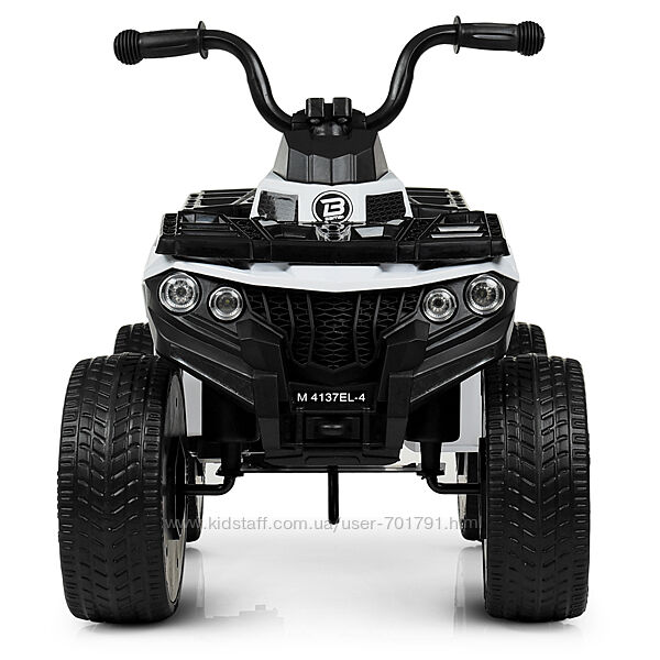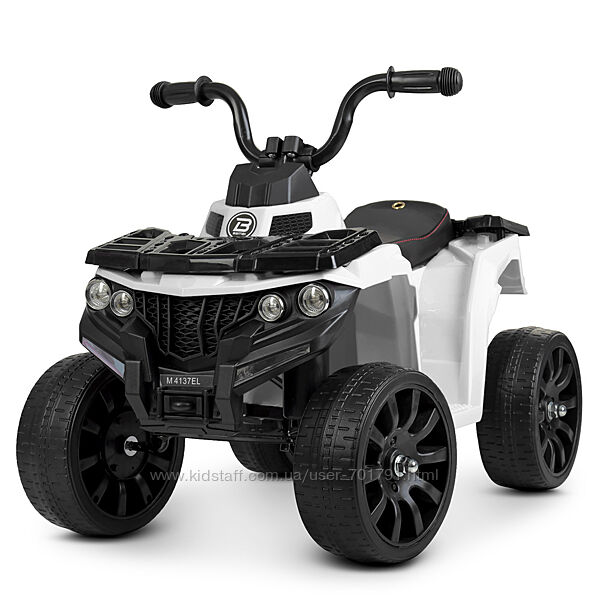 Детский квадроцикл Bambi M 4137 - смог объединить в себе красивый дизайн, достойный функционал и доступную стоимость, такой квадроцикл станет достойным подарком для ребенка, катание на нем гарантирует веселое и интересное времяпровождение. Детский квадроцикл M 4137 сможет сделать поездку комфортной и интересной, данная модель базируется на мягких EVA колесах, а также имеет кожаное сиденье, квадроцикл оснащен световыми и звуковыми эффектами, которые будут развлекать ребенка во время езды.