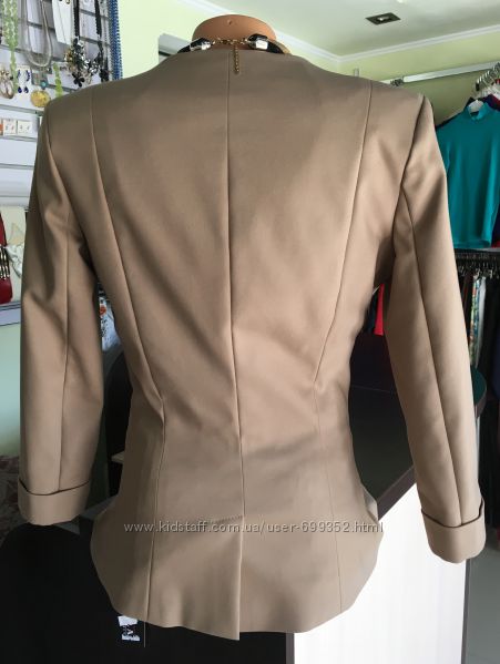 Піджак кольору капучіно, приталений із рукавом 3/4. Підійде під джинси з кросівками та будь-яке класичне вбрання. Виробник Турецький бренд Setre.Розмір на бирці S/36/42, але підійде на XXS. Замір ПЗ по плечах 36 см., ПОТ 34 см., ПЗ по низу 43 см., висота по спині 45 см, довжина рукава 58 см. Торгу немає ціна закупівельна.