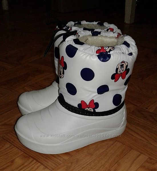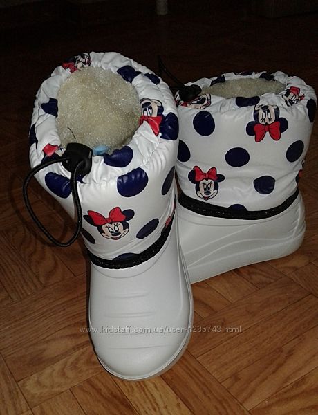 Верх обуви - водонепроницаемая ткань, внутри - искусственный мех, низ сапожек изготовлен из пенки ЭВА*.