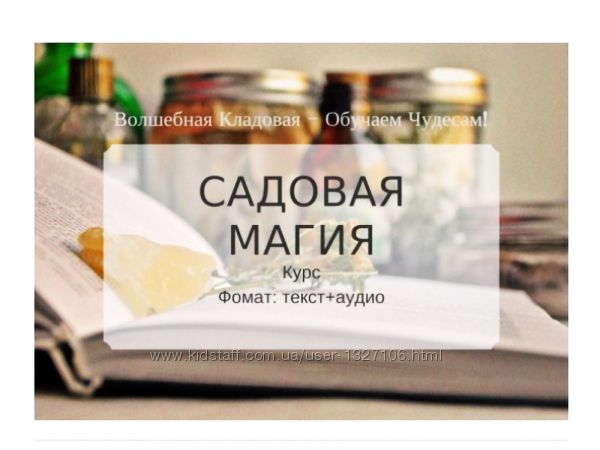 Садовая Магия от Волшебной мастерской 2019года авторская книга и аудиоДля кого: всех, кто любит "садовые продукты" - фрукты, овощи, травы; кто путешествует по деревням России и ближнего зарубежья, или любит бывать в гостях у друзей за городом. Наличие собственной дачи не обязательно, но «дачникам» курс особенно рекомендуется!