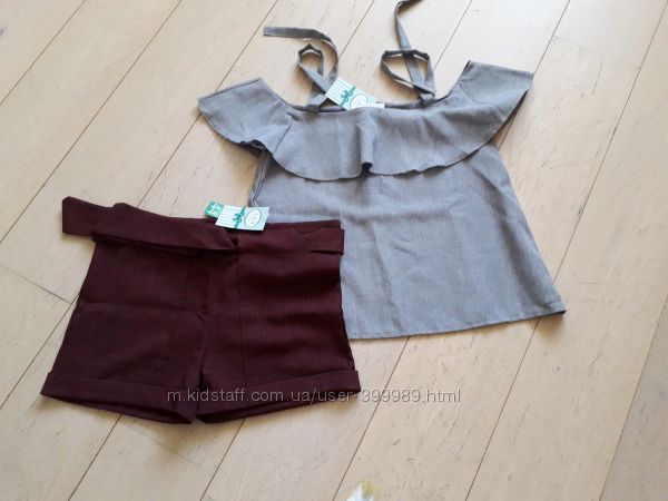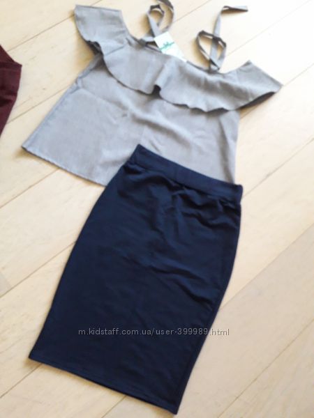 Есть маечка с рюшей из комплекта, ищ той же ткани, цвет серый. Цена 240