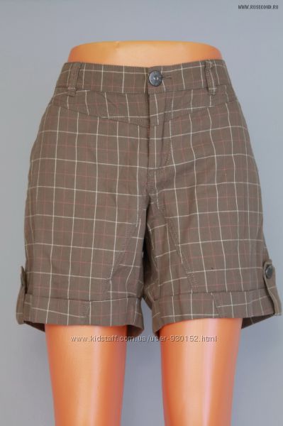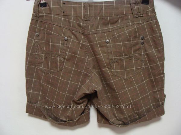 Літні шорти Тakko fashion Німеччина 36 європ наш 42 розмір.Тонкі літні шорти виготовлені з високоякісної бавовни. Застібка блискавка + гудзик-болт. Шорти комфортні, зручні, м´які, не деформуються. На поясі шлейки під широкий ремінь. 4 кишені, 2 бічні прорізні, 2 ззаду накладні. Кишені відстрочені і оформлені заклепками. Штанини на відворотному манжеті, по бічних швах прикріплені шлицами на гудзик-болт на заклепку. Шорти коричневого кольору, розкреслені білими і червоними тонкими смугами в клітку.