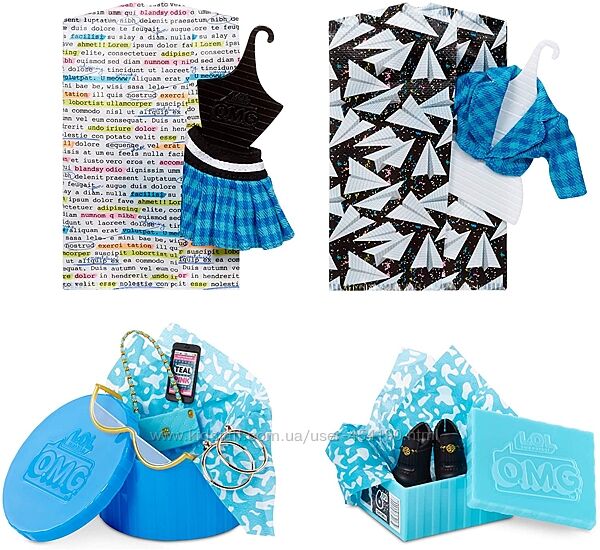 В комплекте: кукла LOL OMG, наряд куклы, коробка-фото зона, стенд для кукол, коробочки от обуви и аксессуаров, пакетики с сумочкой или шляпой, обувь, серьги, браслеты или резиночки для волос, расческа для волос, гороскоп, сумка, очки, инструкция.