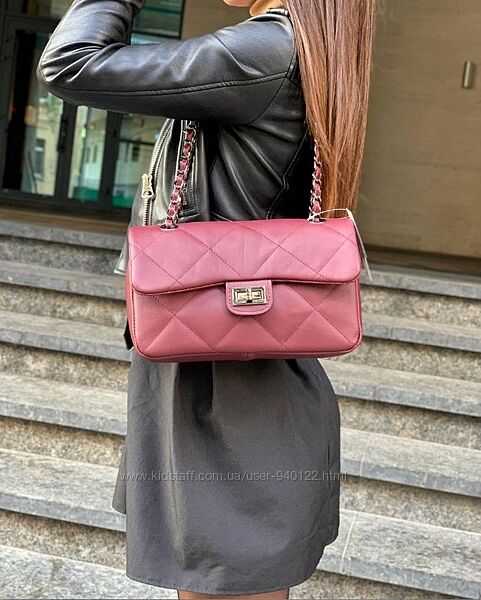 Подробное описание: женская кожаная сумка Италия кросс боди через плечо бордовая Шанель 2,55