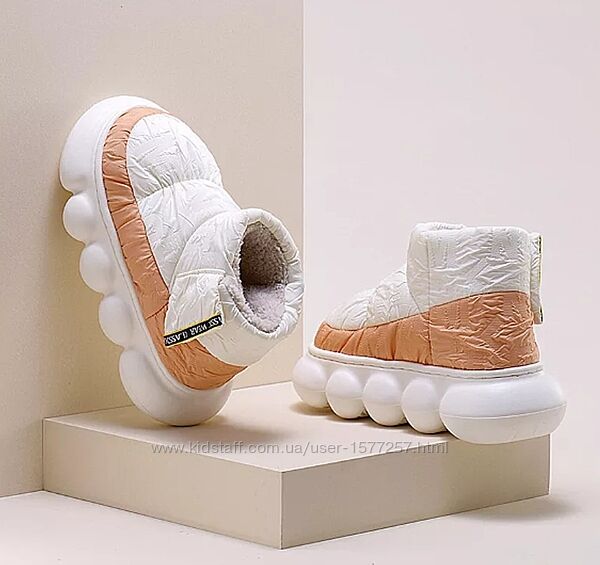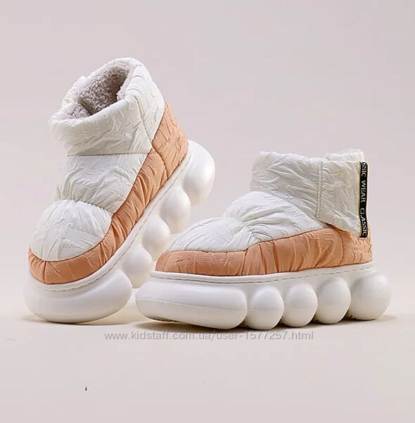 Стильные, теплые, лёгкие дутые угги молочного цвета с персиковым, на объемной фабрично-прошитой подошве, сбоку на липучке. Реально крутые. Размер парный 40-41, на стопу 25-26 см. Новые. Цена 1489 грн.