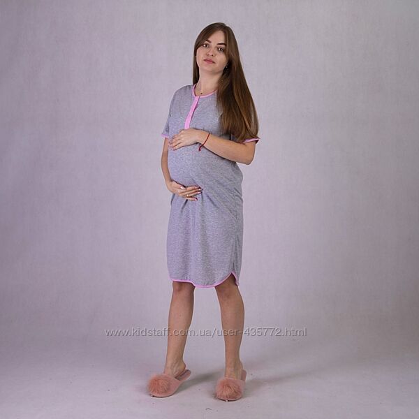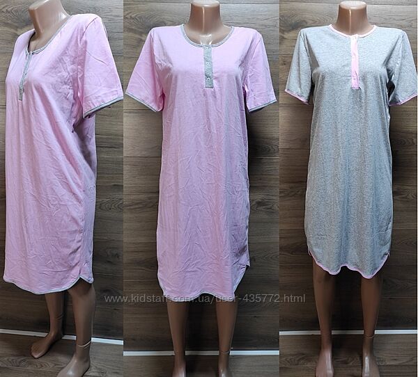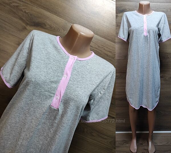 фото 2- 9 Жіноча нічна сорочка з коротким рукавом. Нічна середня довжина з планкою на кнопках, полотно кулір (100% бавовна).Вартість та розмір: