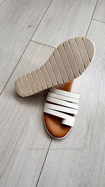 Подробное описание: Шльопанці з натуральної гладенької шкіри смужки білий гірчичний Іспанія в н